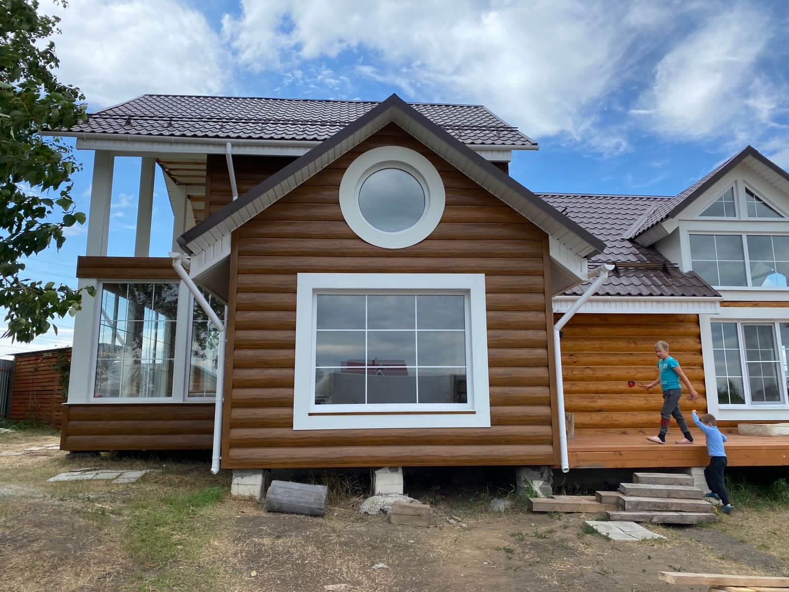 • Дом 210м2, обшитый профнастилом С-8 в оттенке под дерево