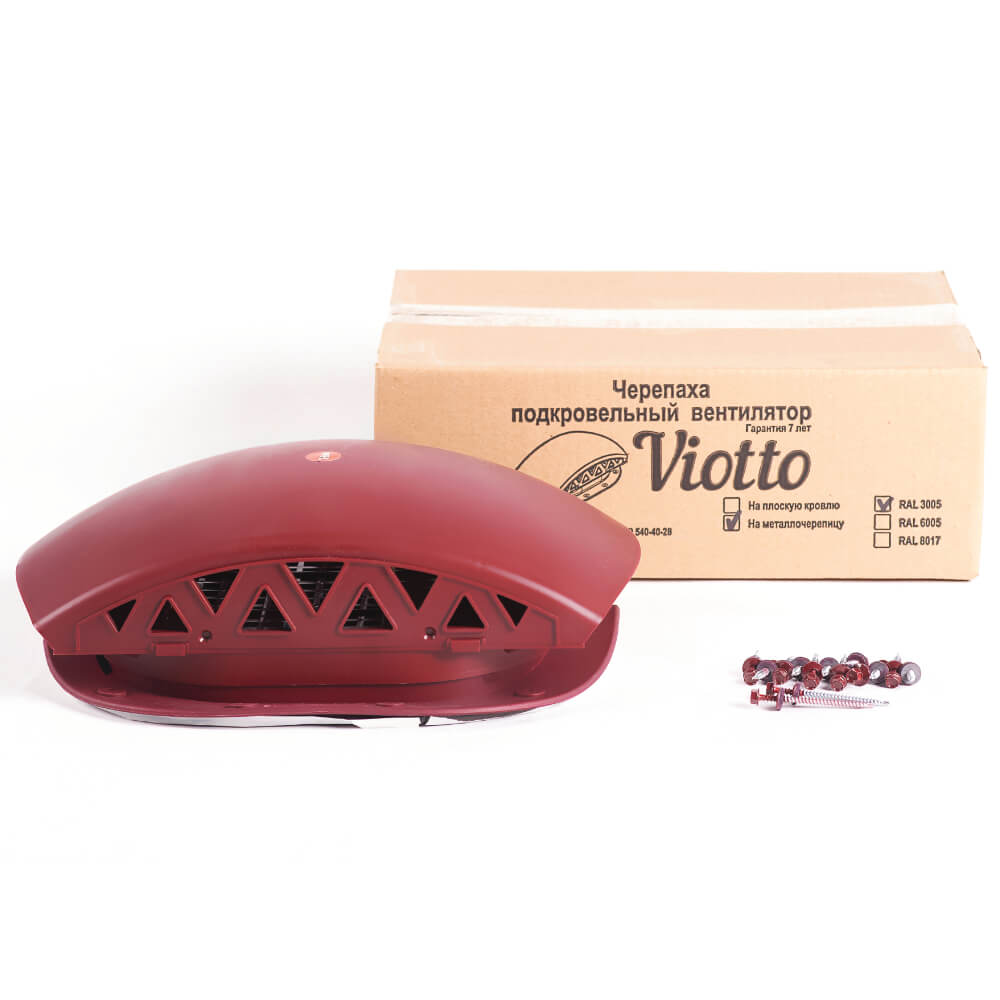 Подкровельный вентилятор "Черепаха" Viotto RAL 3005 Красное Вино для кровли из металлочерепицы в Томске