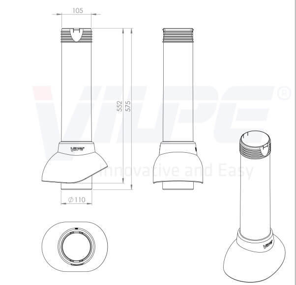 • Монтаж: устанавливается на проходной элемент по типу кровельного материала и крепится к нему шурупами.