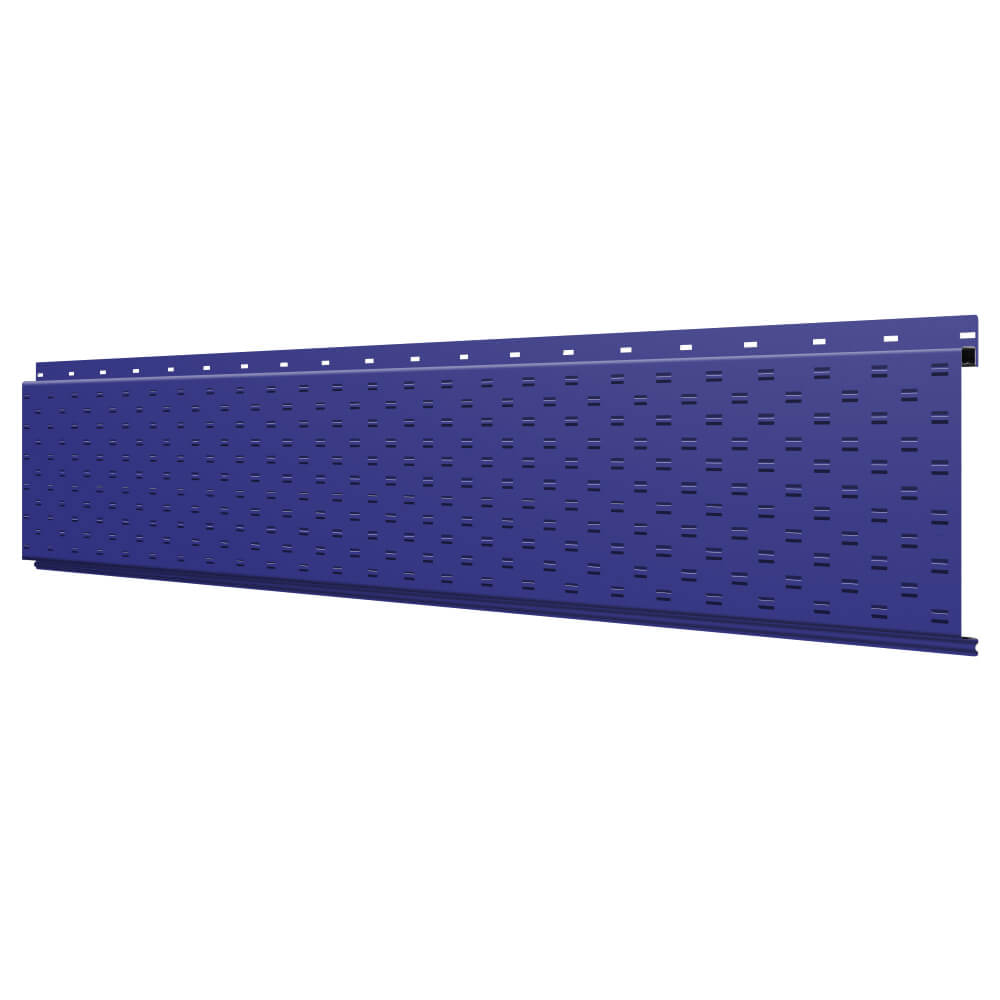 Линеарная потолочно-стеновая панель с ПЕРФОРАЦИЕЙ для вентиляции цвет RAL5002 Синий Ультрамарин применяется в качестве софитов для подшивы крыши, наружной и внутренней отделки потолков, стен, фронтонов фасада дома в Томске.