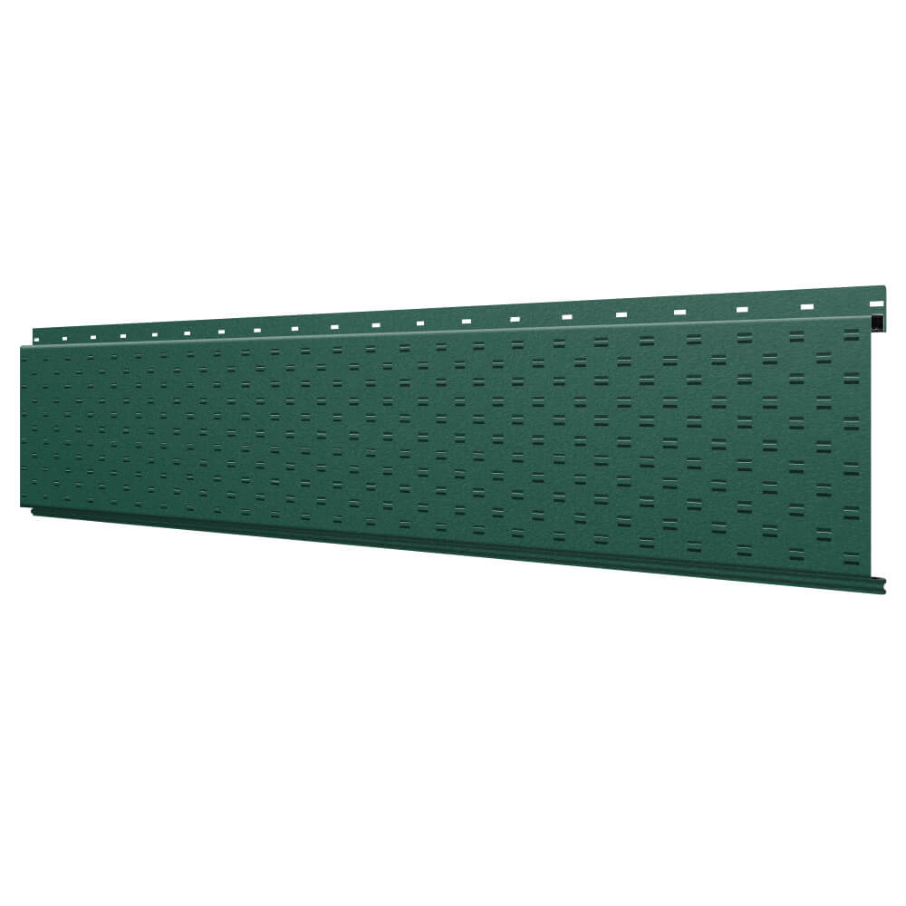 Линеарная потолочно-стеновая панель с ПЕРФОРАЦИЕЙ для вентиляции цвет RAL6005 Зеленый Мох Стальной Бархат применяется в качестве софитов для подшивы крыши, наружной и внутренней отделки потолков, стен, фронтонов фасада дома в Томске.