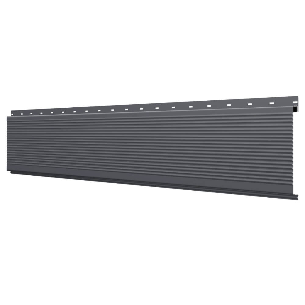 Линеарная потолочно-стеновая панель РИФЛЕНАЯ усиленная цвет RAL7024 Серый Графит применяется в качестве софитов для подшивы крыши, наружной и внутренней отделки потолков, стен, фронтонов фасада дома в Томске.
