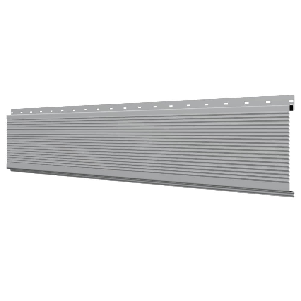Линеарная потолочно-стеновая панель РИФЛЕНАЯ усиленная цвет RAL7004 Серый применяется в качестве софитов для подшивы крыши, наружной и внутренней отделки потолков, стен, фронтонов фасада дома в Томске.