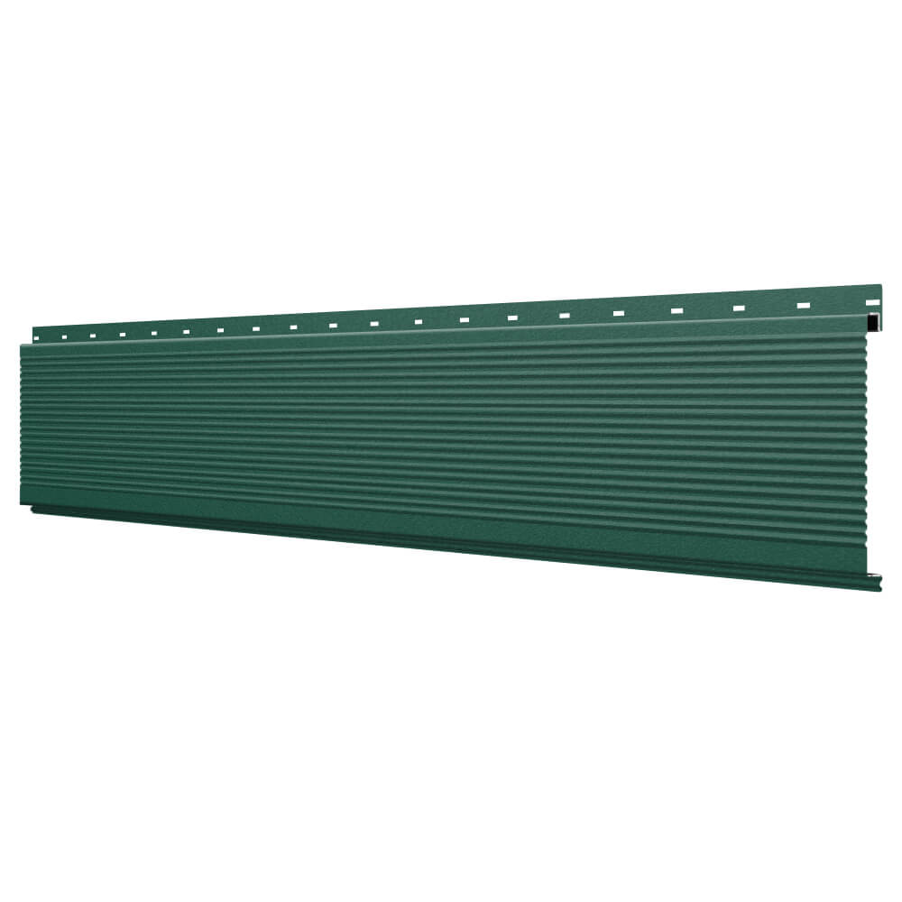 Линеарная потолочно-стеновая панель РИФЛЕНАЯ усиленная цвет RAL6005 Зеленый Мох Стальной Бархат применяется в качестве софитов для подшивы крыши, наружной и внутренней отделки потолков, стен, фронтонов фасада дома в Томске.
