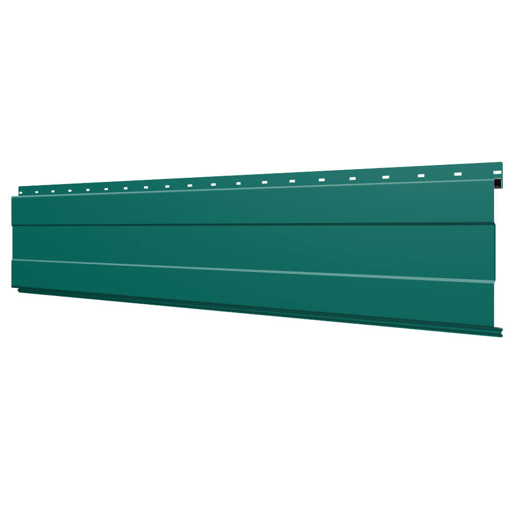 Линеарная потолочно-стеновая панель с ПОЛОСОЙ усиленная цвет RAL6026 Опал применяется в качестве софитов для подшивы крыши, наружной и внутренней отделки потолков, стен, фронтонов фасада дома в Томске.