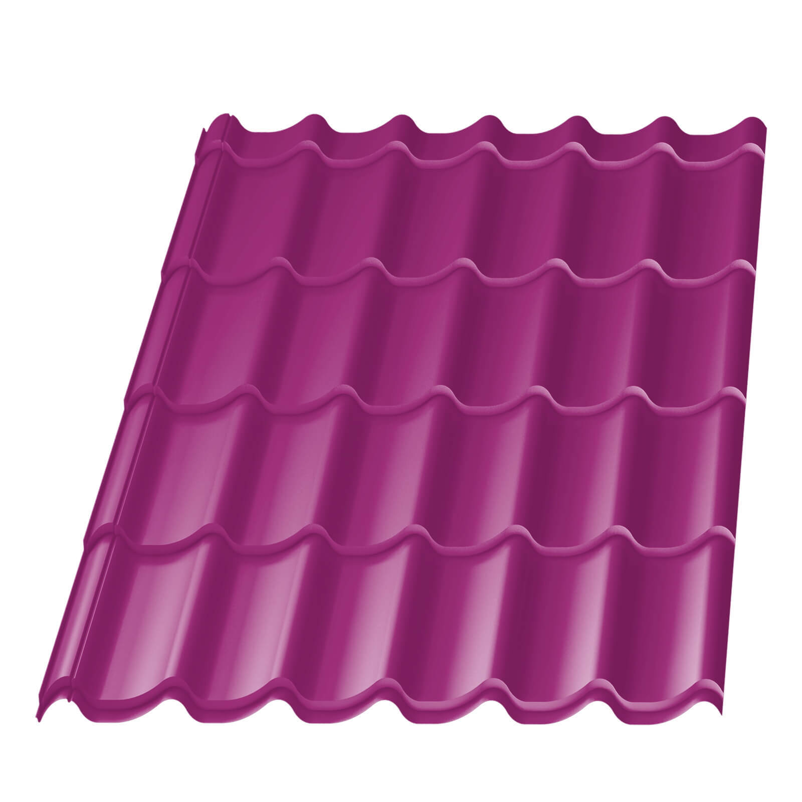 Металлическая черепица Меркурий цвет RAL 4006 Пурпурный имеет профиль внешне на кровле напоминающий классическую керамическую черепицу. Меркурий — это обновленный аналог профиля металлической черепицы для кровли крыши. Форма профиля имеет богатый внешний вид напоминающий небольшие набегающие волны. Лучшие показатели герметизации сделали профиль Меркурий гарантом стабильной и долговременной службы на крышах в Томске. Данный профиль отличается не только своим качеством и практичностью, но и благородным внешним видом.