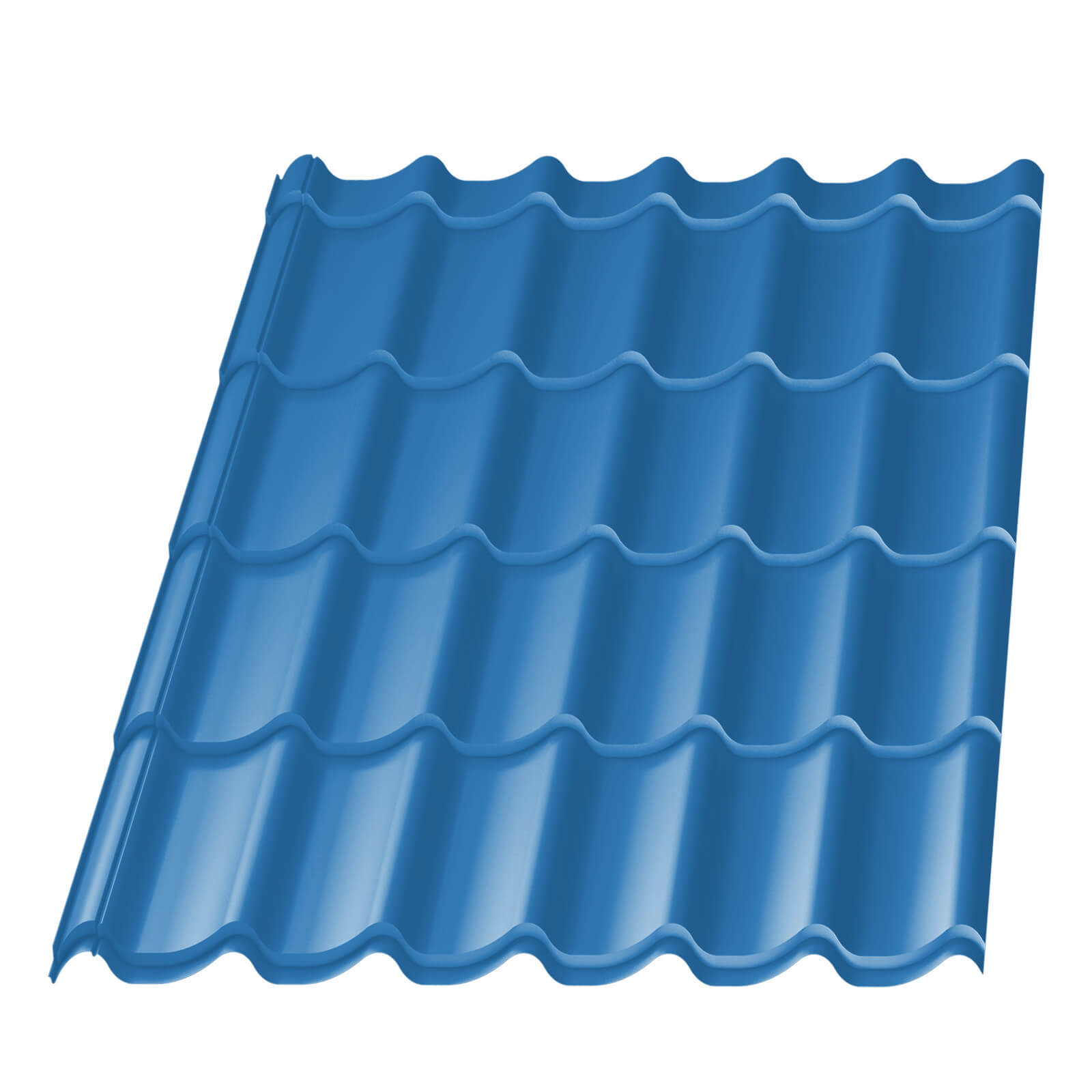 Металлическая черепица Меркурий цвет RAL 5015 Небесно-Голубой имеет профиль внешне на кровле напоминающий классическую керамическую черепицу. Меркурий — это обновленный аналог профиля металлической черепицы для кровли крыши. Форма профиля имеет богатый внешний вид напоминающий небольшие набегающие волны. Лучшие показатели герметизации сделали профиль Меркурий гарантом стабильной и долговременной службы на крышах в Томске. Данный профиль отличается не только своим качеством и практичностью, но и благородным внешним видом.