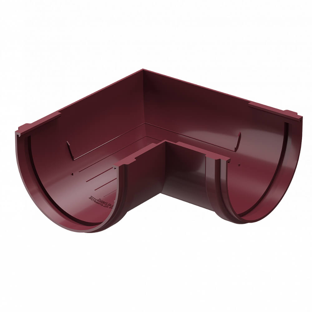 Угловой элемент желоба универсальный ДЕКЕ STANDARD d120мм 90 градусов цвет RAL 3005 Красный в Томске. Угловые элементы устанавливаются как на внешних, так и на внутренних углах кровли и предназначены для соединения желобов.