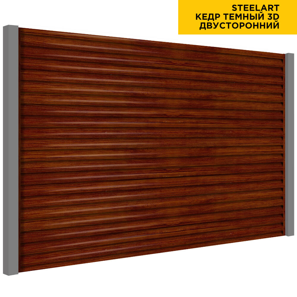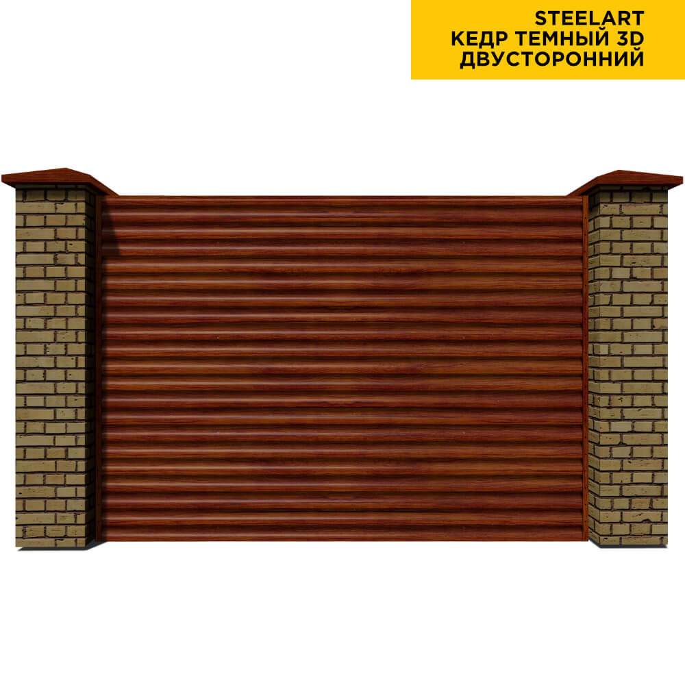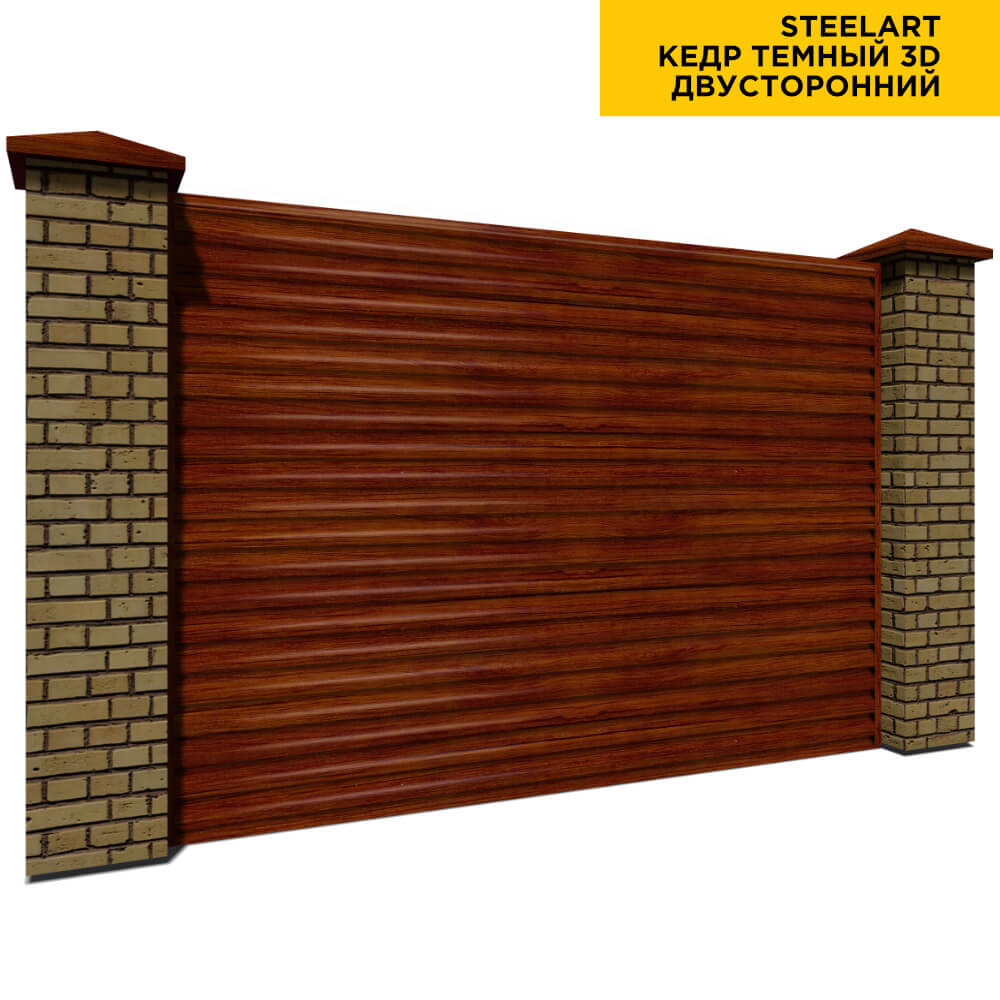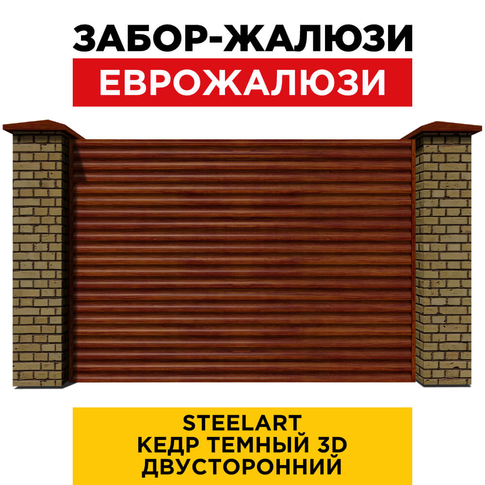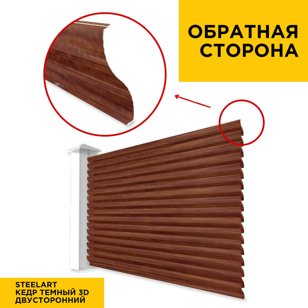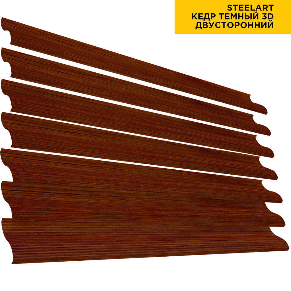 Ламель Еврожалюзи металлическая S-образная, цвет под дерево Кедр Темный 3D SteelArt Россия двухстороннее покрытие, длина любая кратно 1см под заказ - для забора-жалюзи, беседки, перголы в Томске